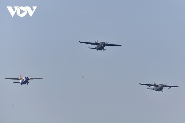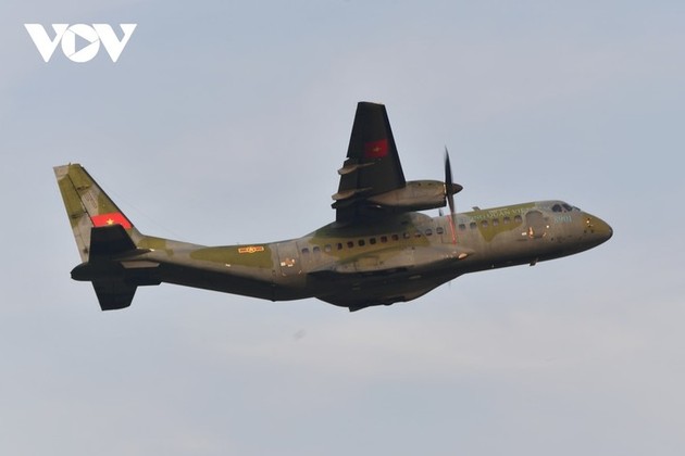 Meanwhile, a C295 transport aircraft performed solo flights, taking off and landing repeatedly at Gia Lam airport.