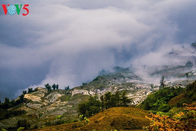 Die Wolken werden als die „riesigen Magneten“ bezeichnet, die die Touristen, die sich für Fotoaufnahme interessieren, anlocken. (Ngai Thau-Bat Xat-Lao Cai)