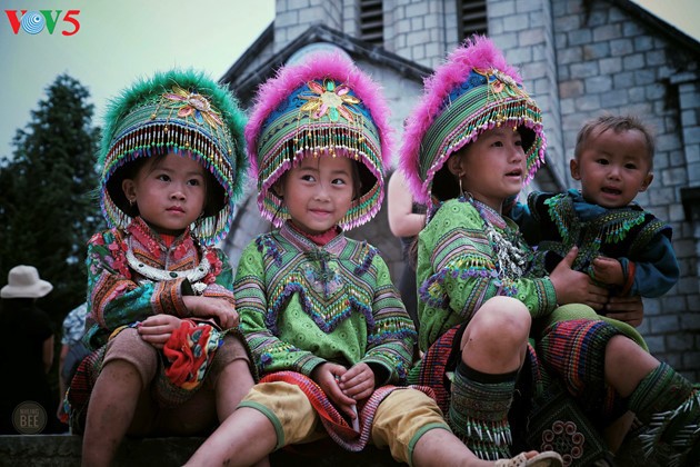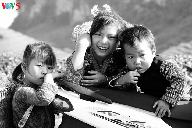 Drei Geschwister aus der Volksgruppe H’Mong in Moc Chau. (Foto: Ta Quoc Ai)