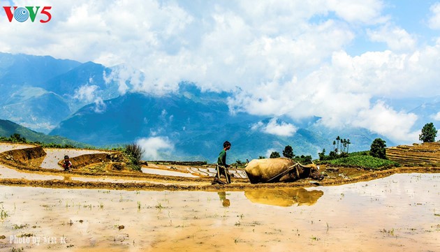 Der Vater pflügt das Feld. Der Sohn wartet ihn. (Foto: Khong Hoang Giang)
